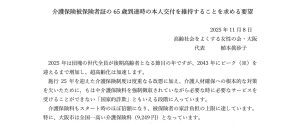 上野 賢一郎厚生労働大臣他72名に「介護保険被保険者証の65歳到達時の本人交付を維持することを求める」要望書を送付しました。 2025年11月24日 最終更新日時 : 2025年11月24日 admin@wo01 65歳交付ダウンロード